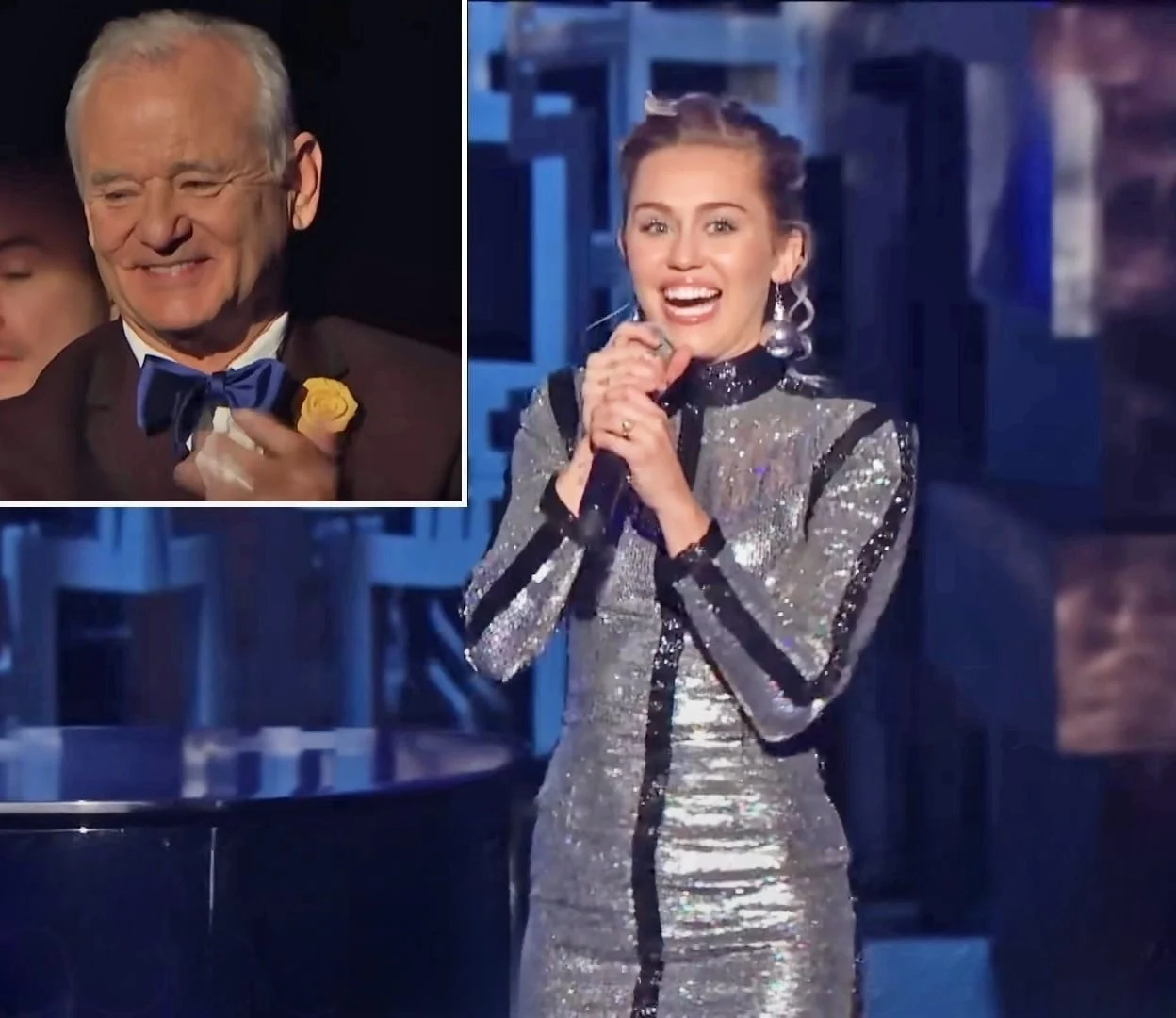 Like Sinatraโs 1969 classic, Mileyโs version opens with a grand piano as the background, a waltz-like tempo embellished with pop icon vocal runs, and clever asides interspersed between words. Bill Murray, who was seated in the audience, gave Miley a standing ovation as she ascended the stage and watched her first verse with tears in his eyes.